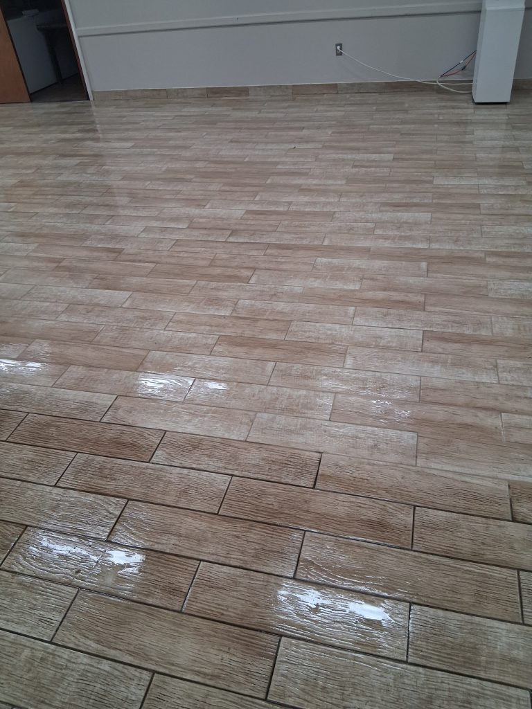 After cleaning, sealing protects grout without creating slippery coatings.
